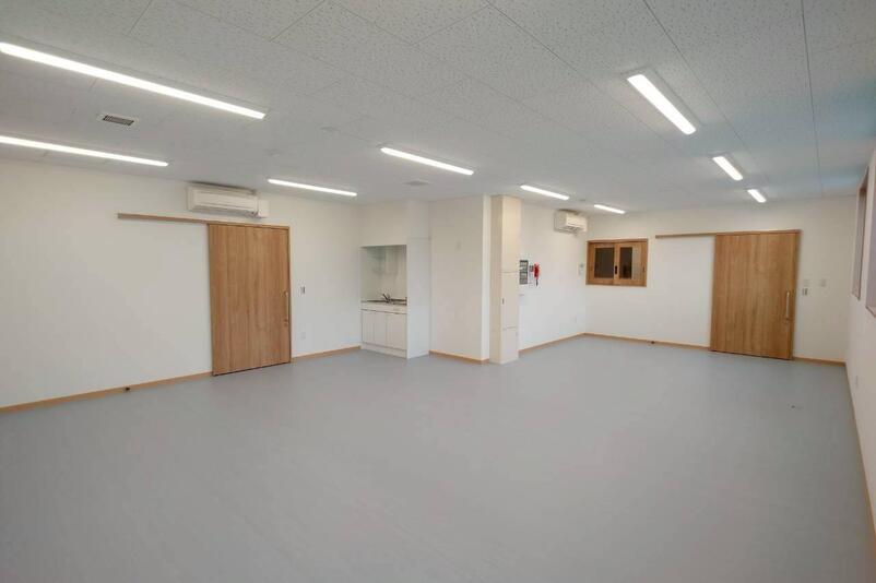 | 工事概要 | 【就労支援事業所新築工事】 木造 2階建 建築面積:472.95㎡ 延床面積:688.976㎡ 環境パイル工法・布基礎・木造在来工法・大スパン木造トラス 屋根:GL鋼板縦平葺 外壁:窯業系サイディング 壁・天井:PB下地+ビニルクロス貼り 床:ビニル床シート 電気設備・機械設備他 |